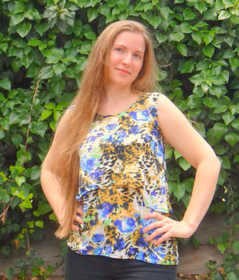 above: This is my own version and I used a matte jersey - I sewed one size larger and normally I cut on the petite cutting line but this time I cut on the regular cutting line. To get a flowy look like this use a drapey material instead of a clingy knit. You can also extend the bottom cutting line 1 inch along the fold to give it extra flare!