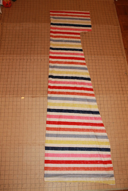 4. Trace around your t-shirt and angle it out (like an A-Line shape) until your cover-up is as long as you wanted it. (Mine was 31 inches. The picture shows it longer, but I cut it shorter after this and didn't take a picture.)