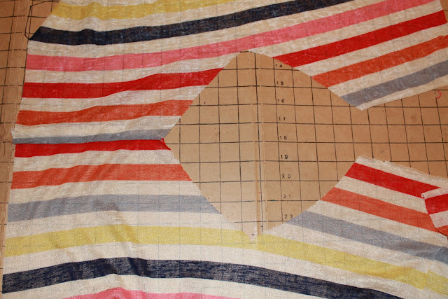 10. Cut a strip of the fabric 2 inches wide x the length of the neckline. (I made mine 5 inches longer than needed - you would rather have too much than not enough as you pin.)