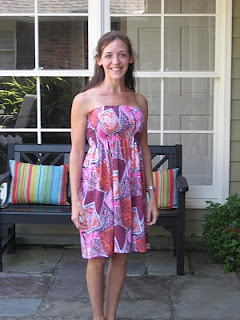 Below: My sister, Laurie, is wearing the first shirred dress I made about 2 years ago.