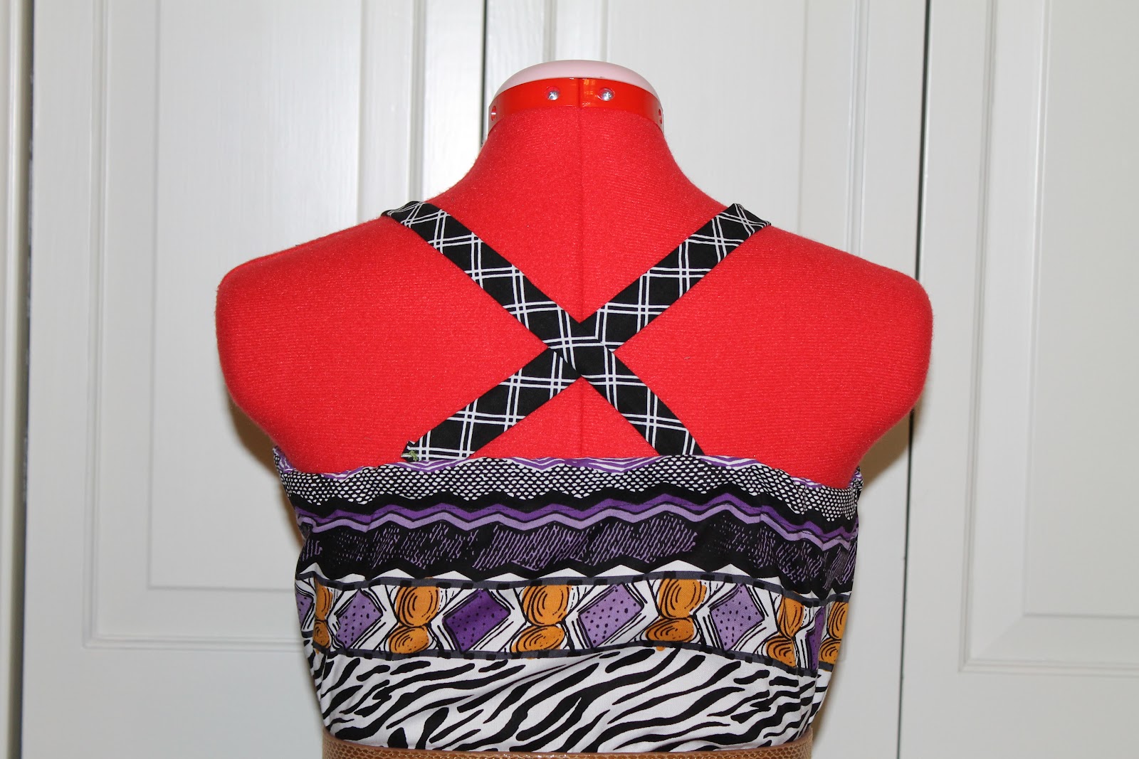 Strap options include: straight shoulder straps, criss-crossed shoulder straps or a single halter strap that ties into a knot or a bow behind your neck.