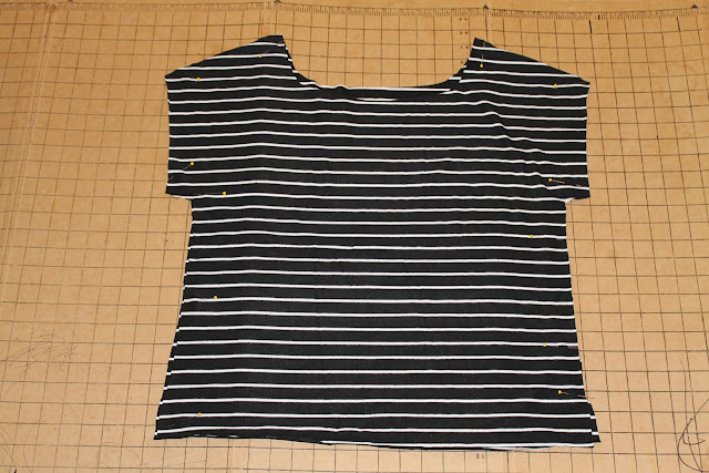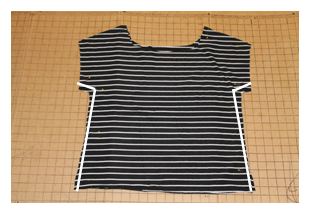 2. Cut around your shirt adding a 5/8 inch seam allowance along the shoulder and side seam only - not the neck or bottom