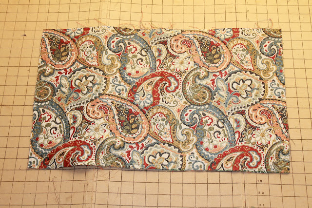 4. Let's figure out the size of the two back pieces. They will overlap. So I figure out what is half of the width I need and then add 3 inches to that. Mine would be 20 / 2 = 10 + 3 inches = 13 inches