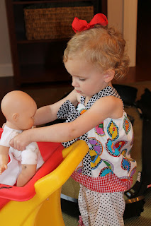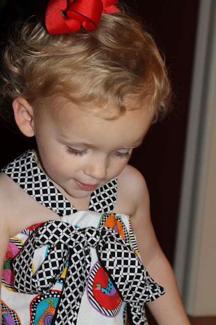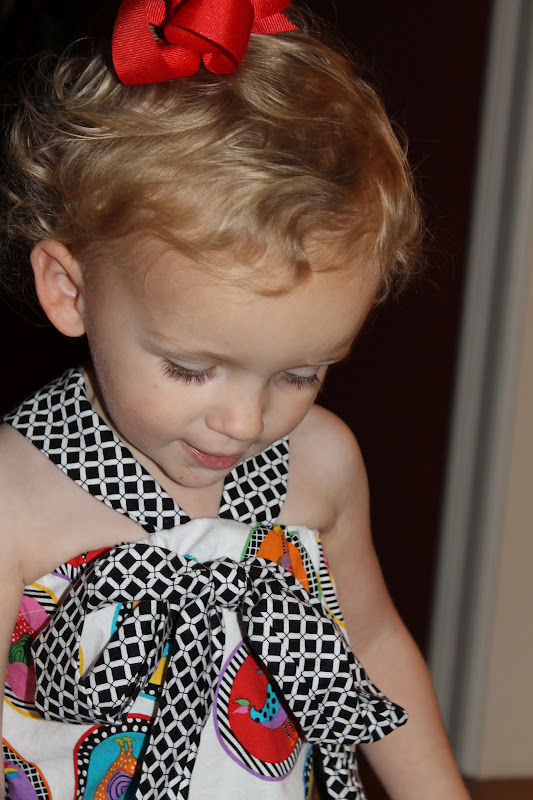 I made this bubble top for my little girl the other day out of some polk-a-dots, gingham and chicken fabric. The chicken fabric just makes me smile! It's so easy to make a bubble top!