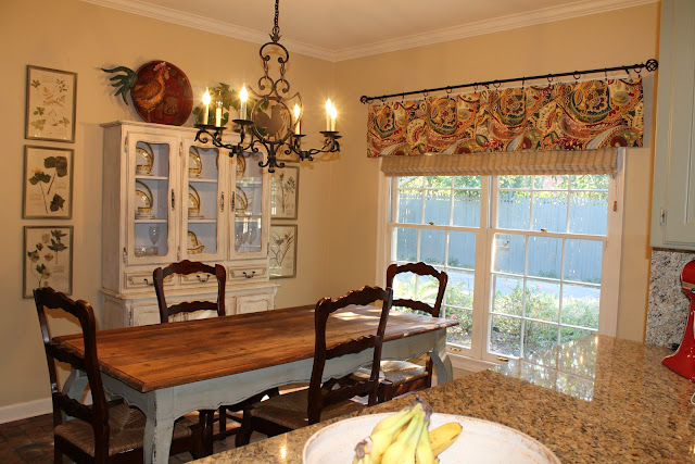 If you have ever wanted a quick change for your windwows and did not want to commit to drapes or roman shades, a valance is an easy and quick sewing project. I have had the same valance in my kitchen for about two years and finally got tired of looking at the red toile. My taste changes back and forth from French Country to Transitional - meaning I like traditional decorations with a slight modern touch here and there and with the amount of time I spend in fabric stores, my eye is always on the lookout for a new sewing project!