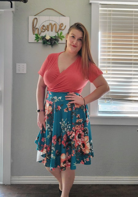 For my top, I’m using an olive rayon spandex, and for the skirt I’m using a gorgeous floral