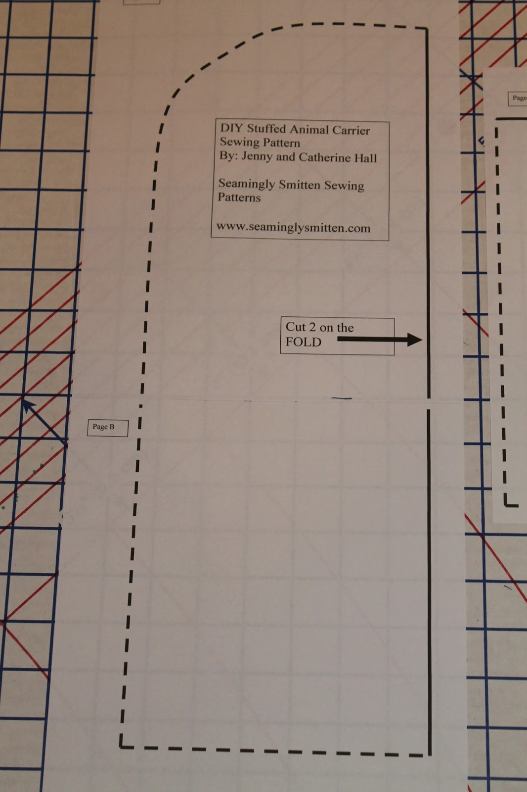 Print the FREE stuffed animal carrier pattern pieces HERE.