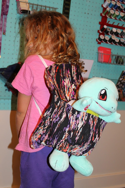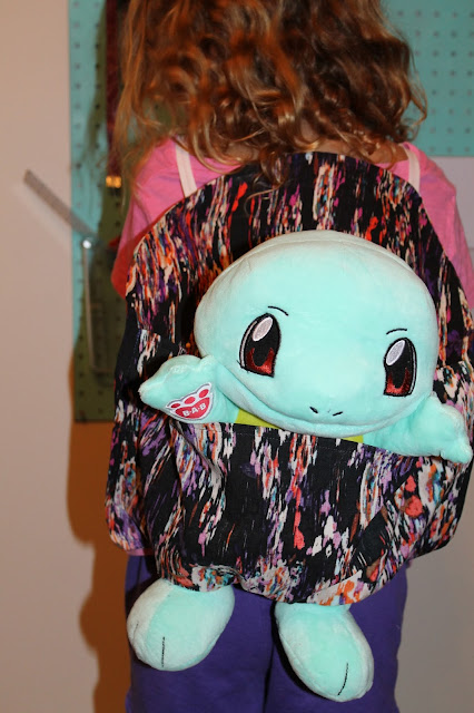 The other day my daughter wanted to spend some of her birthday and allowance money at Build-A-Bear so off we went to the mall! She quickly realized that there were too many things she wanted and not enough money for them of course :) She found the bear she wanted - Squirtle the Pokemon character - and then wanted a stuffed animal carrier for him. But, when she saw the price and looked at it, she said, "Mom, I think we should go home and make this!" OMGOSH did my heart explode! My little girl loves a project and this one was going to be so much fun to do together!