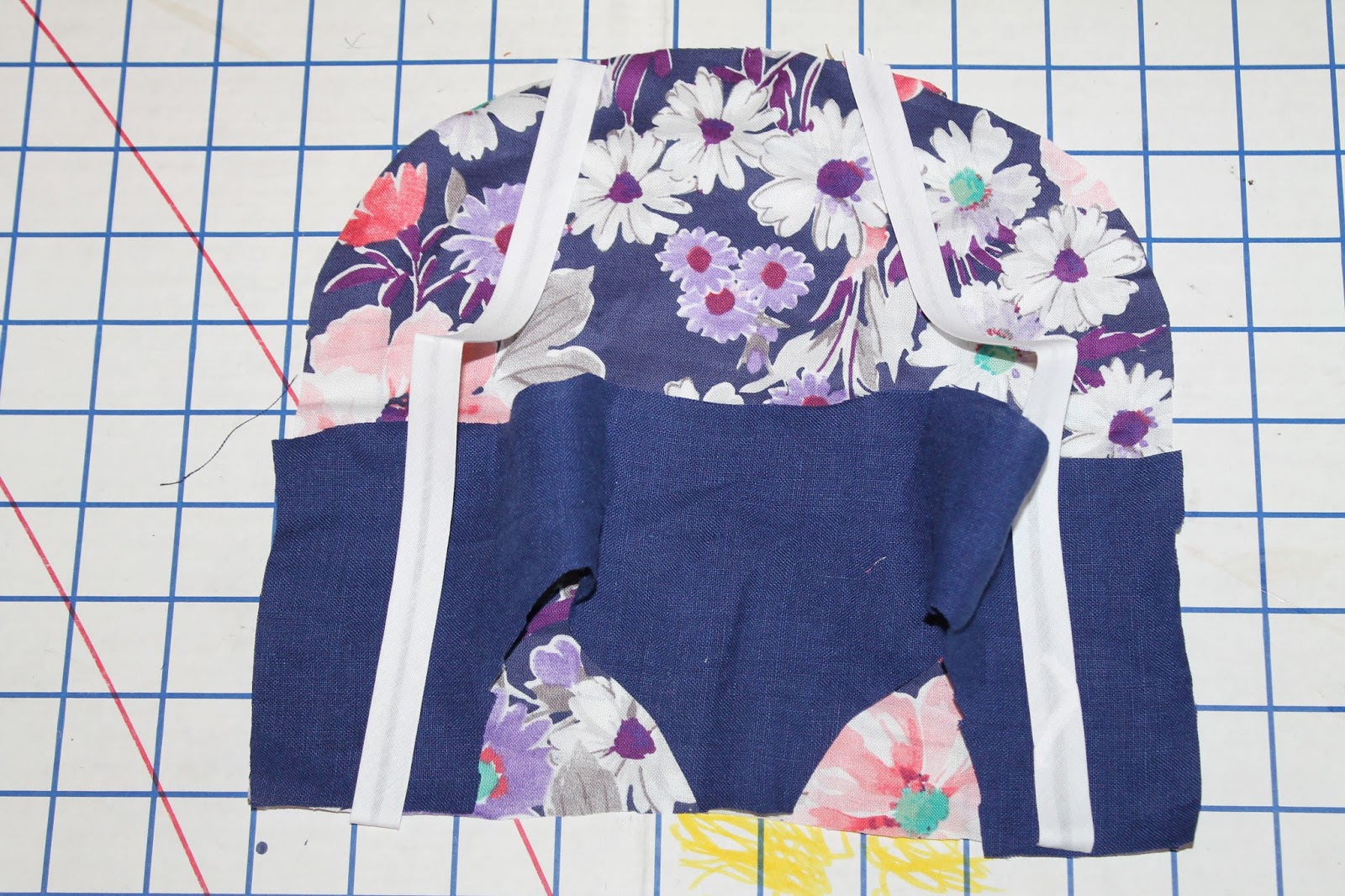 Materials: 1/2 of a yard of cotton fabric; 1/2 yard of fusible interfacing; 36 inches of bias tape (for straps or 1/8 of a yard of fabric for the straps)