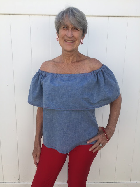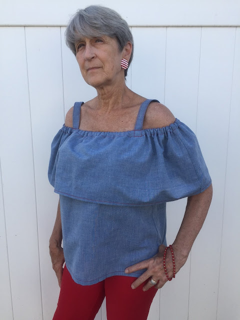Find the pattern here---->Women's Royal Street Off the Shoulder Ruffle Top