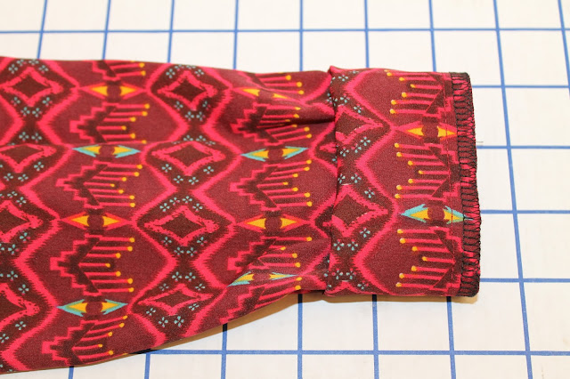 3. Hem the sleeves: Hem the sleeves if you did not add a cuff: Fold up a ¼ inch hem on each sleeve and then another ¼ inch. Pin and sew each sleeve hem. **HINT: For the BEST FIT try your dress on