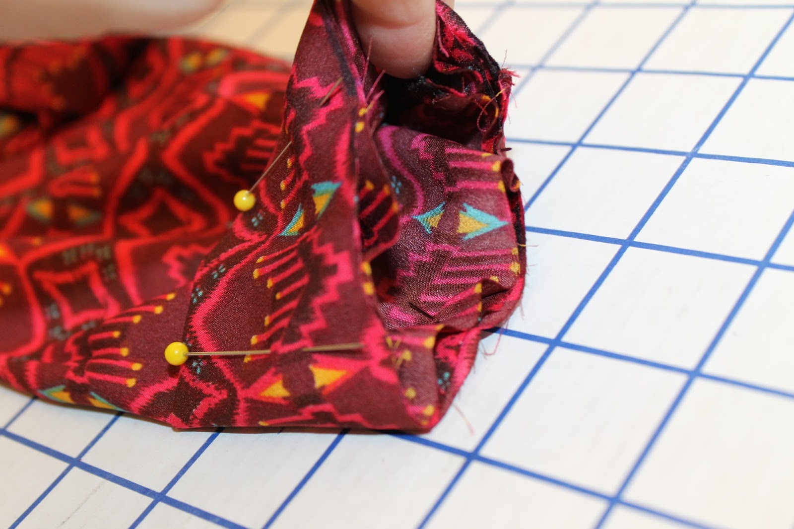 press with an iron and fold up another ¼ inch hem. Press with an iron and pin all