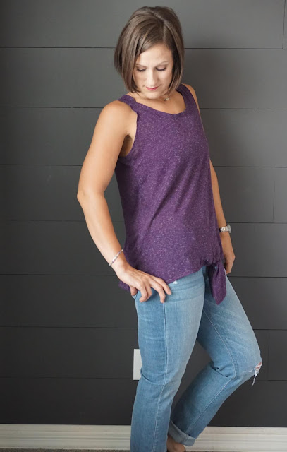I absolutely love seeing a pattern hack from a customer! Rebecca Tresler took our Draped Tank PDF Sewing Pattern and added a knot along the center front to make a knotted tank! (And if you notice she is the cover photo in that pattern picture!)